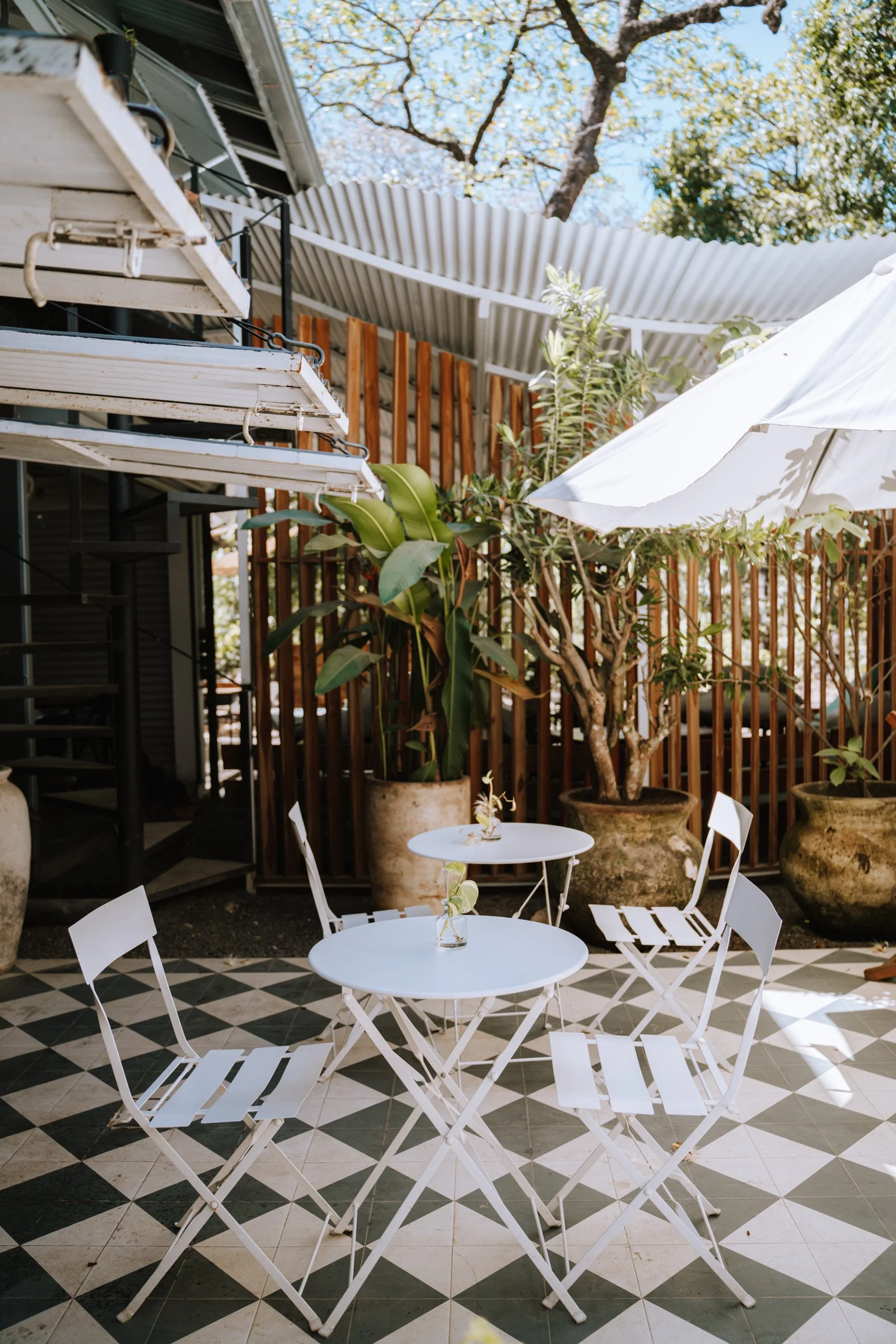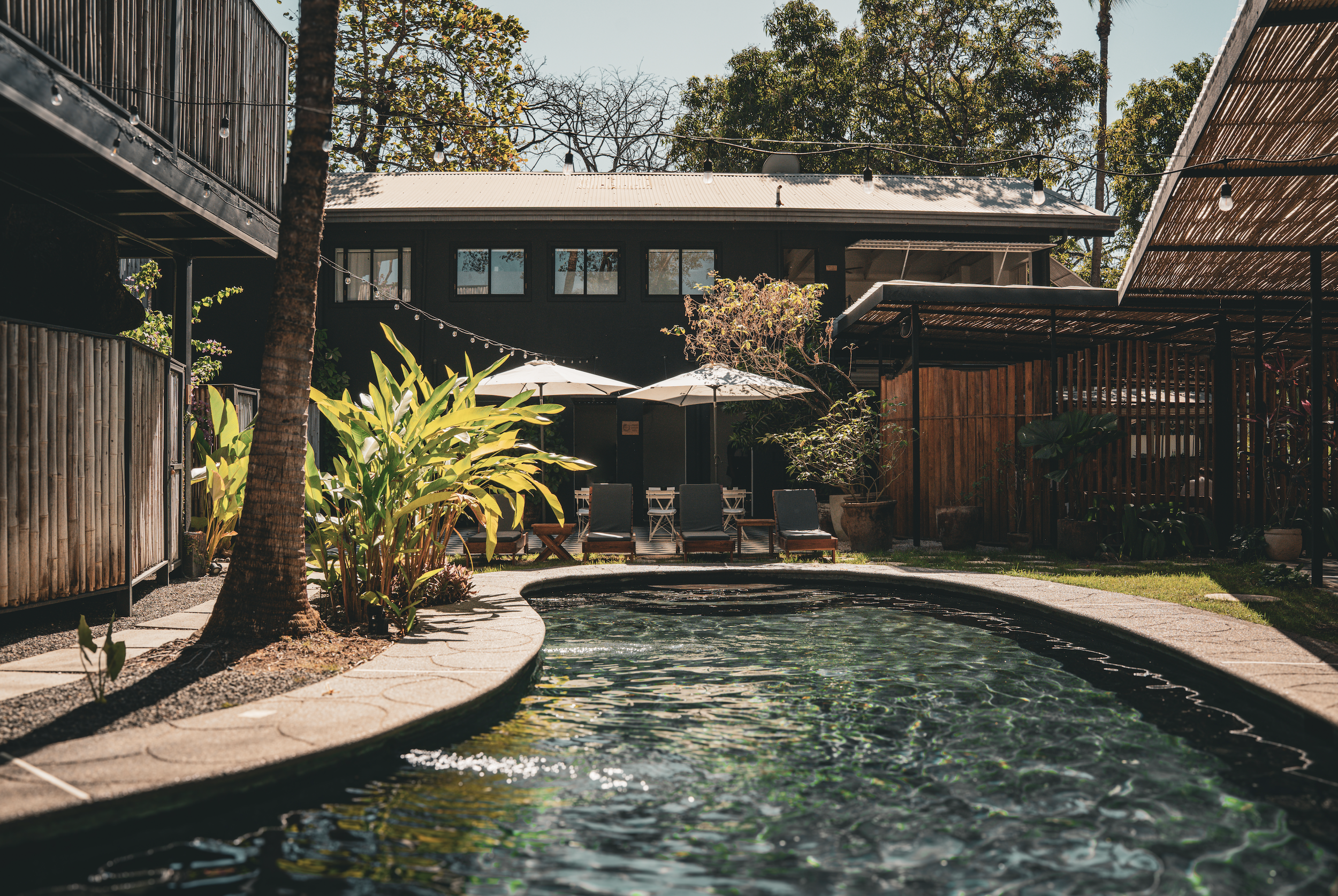 Together, the two form an L-shape around the pool, outdoor lounge, and dining area: the social heart of the property where mornings start slow and afternoons tend to linger.